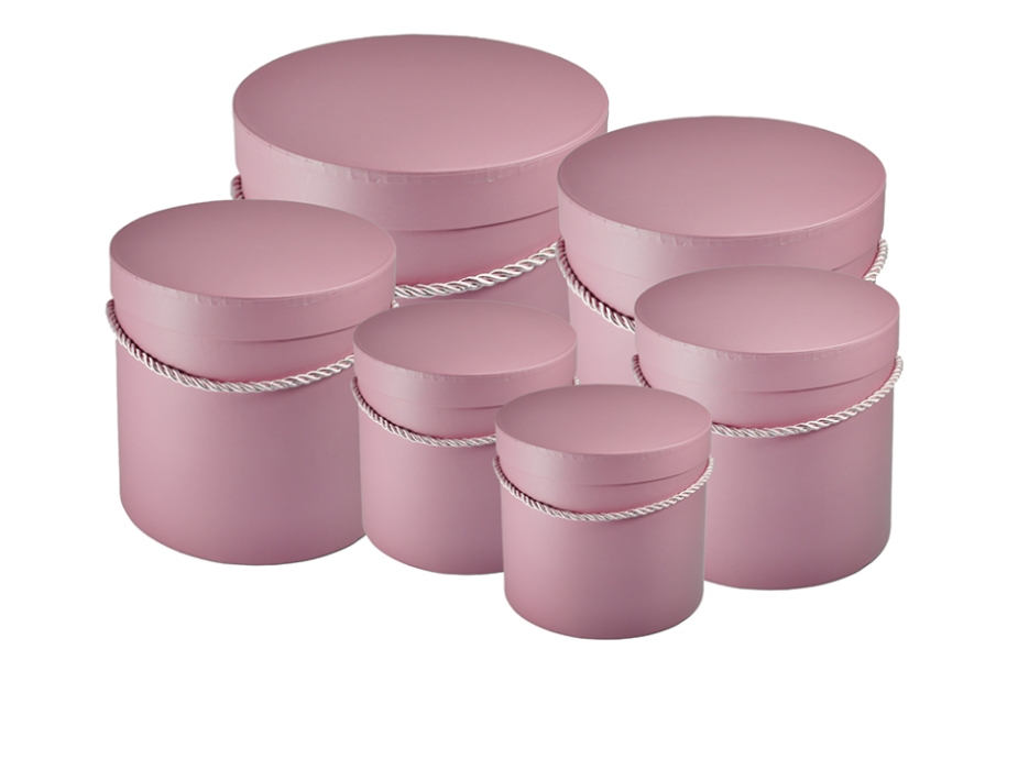 Flowerbox – komplet 6 pudełek okrągłych ze sznurkiem – karminowy róż