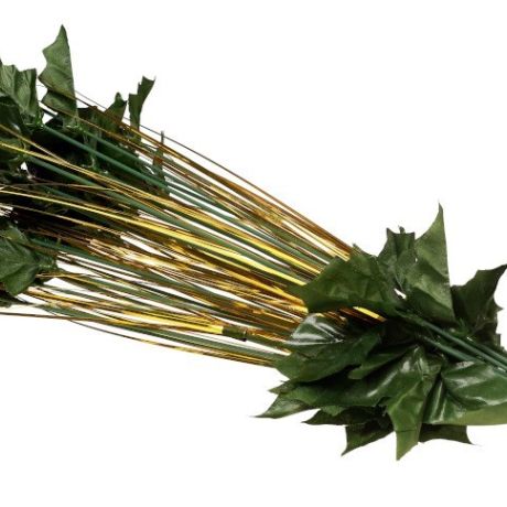 Łodygi do kwiatów wyrobowych róży. Całkowita długość łodygi wynosi 58 cm. Pokryta jest liśćmi wykonanymi z tworzywa sztucznego. Podstawą łodygi jest drut. Cena za sztukę: 0,65 gr.